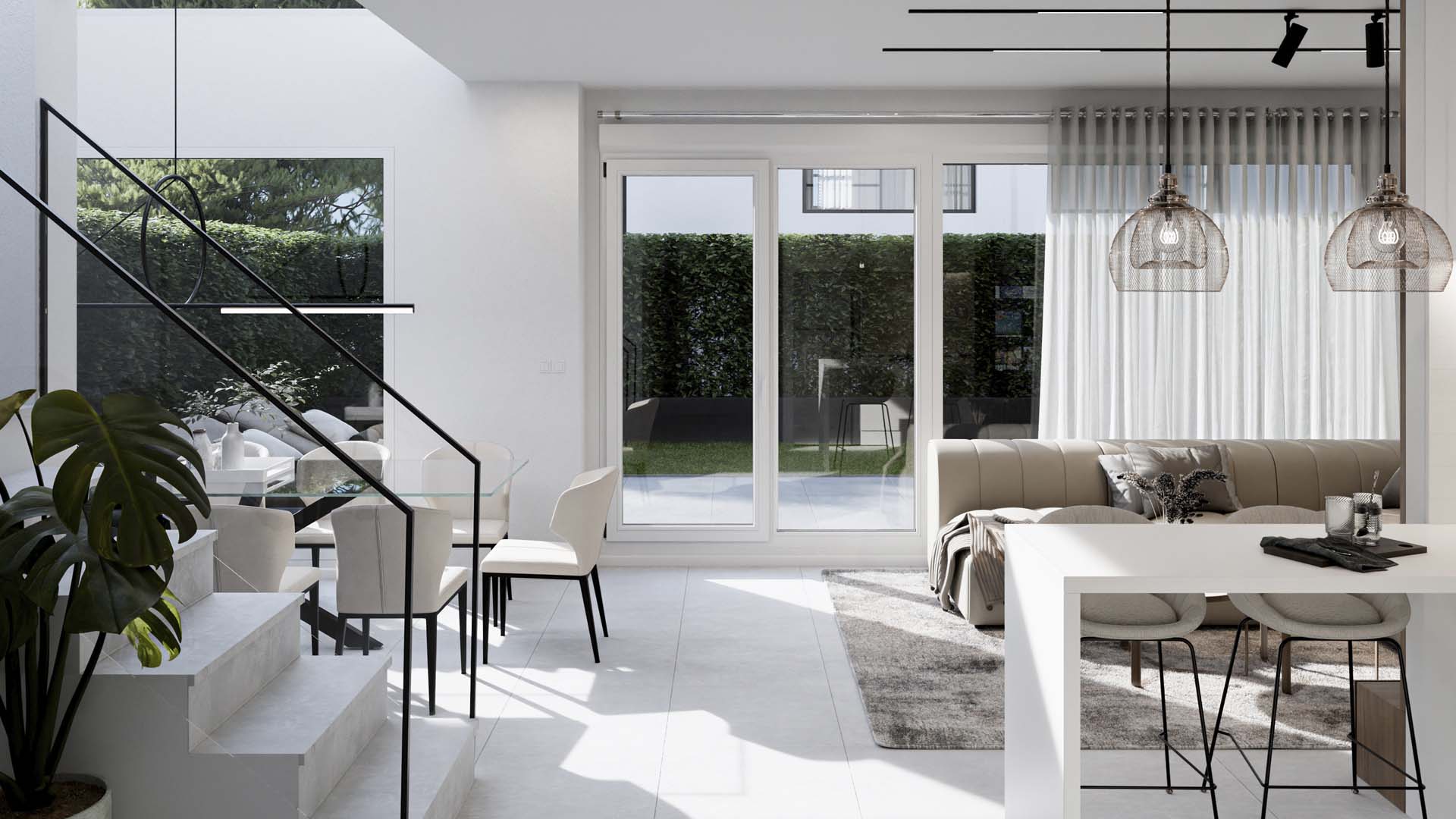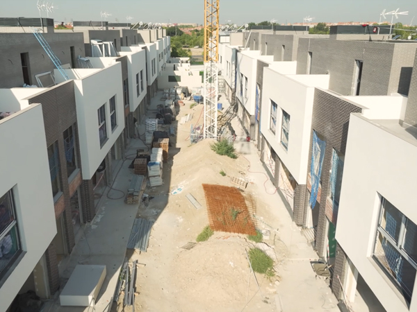 Un exclusivo residencial de chalets adosados y pareados con amplios espacios abiertos y funcionales interiores situado en el joven Barrio de Los Molinos de Getafe.